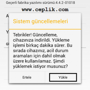 Eğer güncelleme varsa telefon buna dair bilgilendirmede bulunur. Paketi indirmek için ‘İndir‘, paketi yüklemek için ise ‘Yükle’ butonuna dokunmalısınız.