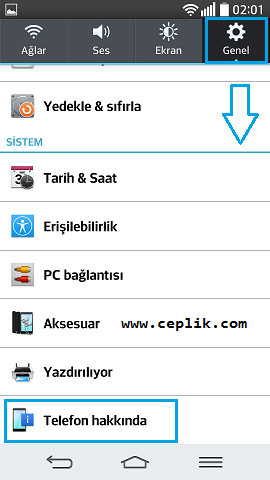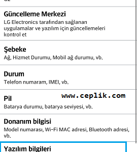 LG marka akıllı telefonlar da Android işletim sistemiyle çalışıyor ve güncel modellerde bu bölüm kapalı. İlgili bölüme ulaşma mantığı diğer Android işletim sistemi kullanan telefonlarla aynı.