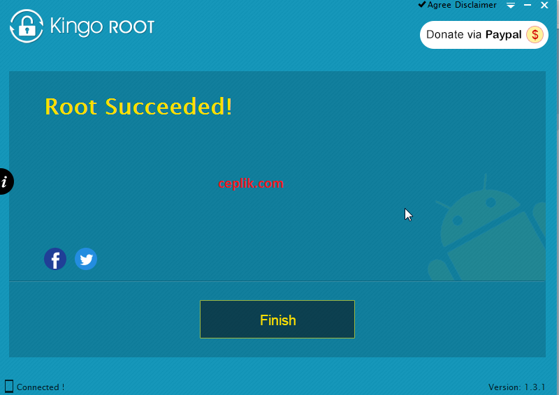 Bağlantı kurulduğunda program penceresinde ROOT butonu aktifleşir. Butona tıklayıp işlemi başlatabilirsiniz. Program internete bağlanıp tablete uygun root dosyalarını indirecektir. İşlem başarıyla bittiğinde FINISH butonunu göreceksiniz. Programı kapatabilirsiniz. Bu arada tablet kendini kapatıp yeniden açabilir. Tablet açıldığında menüye girip SuperSu uygulamasını bulun. Uygulamayı açın. Uygulamada sıkıntı yoksa tabletiniz başarılı bir şekilde rootlanmış demektir.